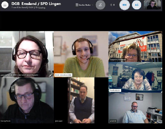 und Dirk Iserlohe und die Geschäftsführung des LWT Jan Kormann, und seinem Stellvertreter Marko Schnittker zum digitalen Gespräch. Für den SPD-OV-Lingen nahmen am Gespräch Carsten Primke, Jens-Uwe Schütte, Hannelore Scholz und Georg Thole teil.